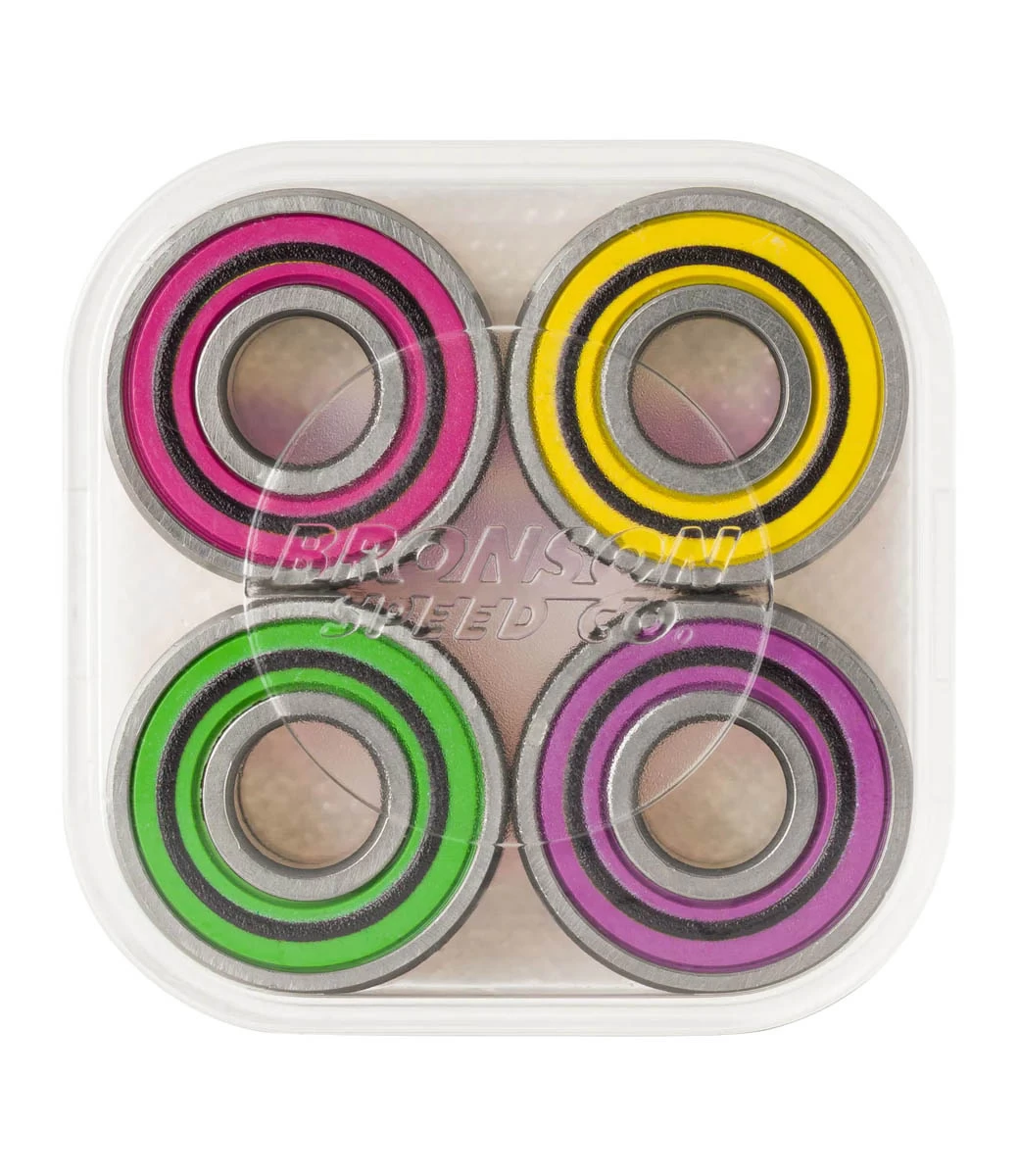 Bronson Speed Co is er trots op om het kenmerkende G3 lager van Alex Midler uit te brengen met een veelkleurig regenboogthema met Midler lasergravure op de buitenste lagerloopvlakte. Ga snel, blijf snel met Bronson lagers!