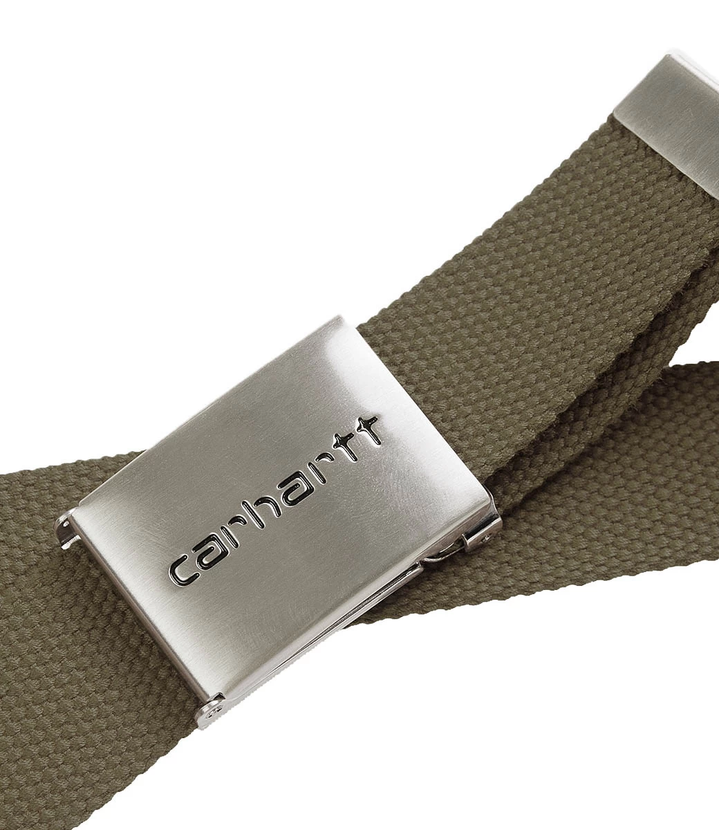 De Clip Belt Chrome is gemaakt van robuust polyester canvas en heeft een verwisselbare chromen metalen clip gesp met contrasterende Carhartt WIP branding. Eén maat.