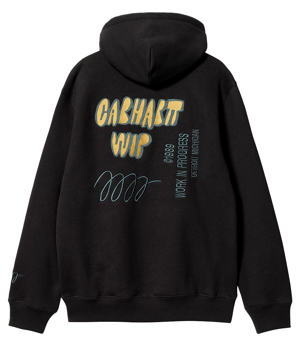 Het heeft ook een kangoeroezak en een geribde zoom en manchetten. Op de voor- en achterkant staat een seizoensgebonden grafisch borduursel.