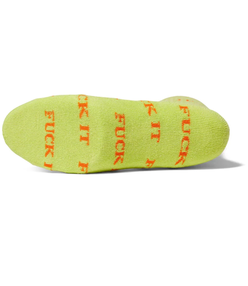 De Fuck It Sock heeft HUF’s kenmerkende ‘Fuck It’ slogan in een all-over print op een effen body. Een verstevigde hiel en teen bieden extra duurzaamheid, terwijl een voetbed met kussentjes zorgt voor comfort en ondersteuning. Vanaf hier gaat het bergafwaarts.