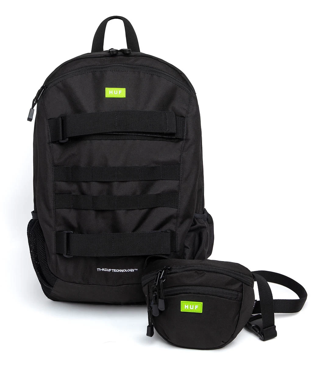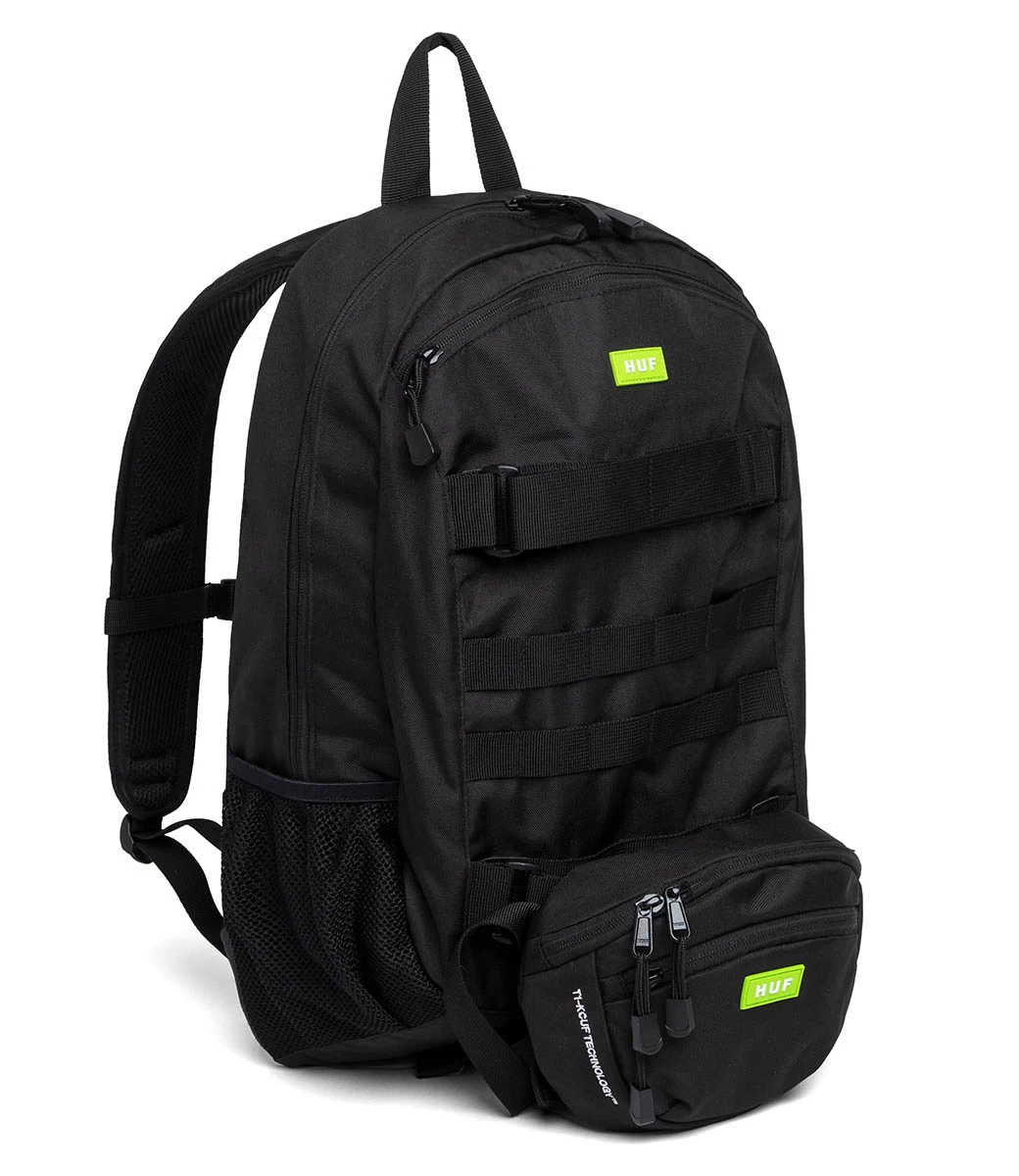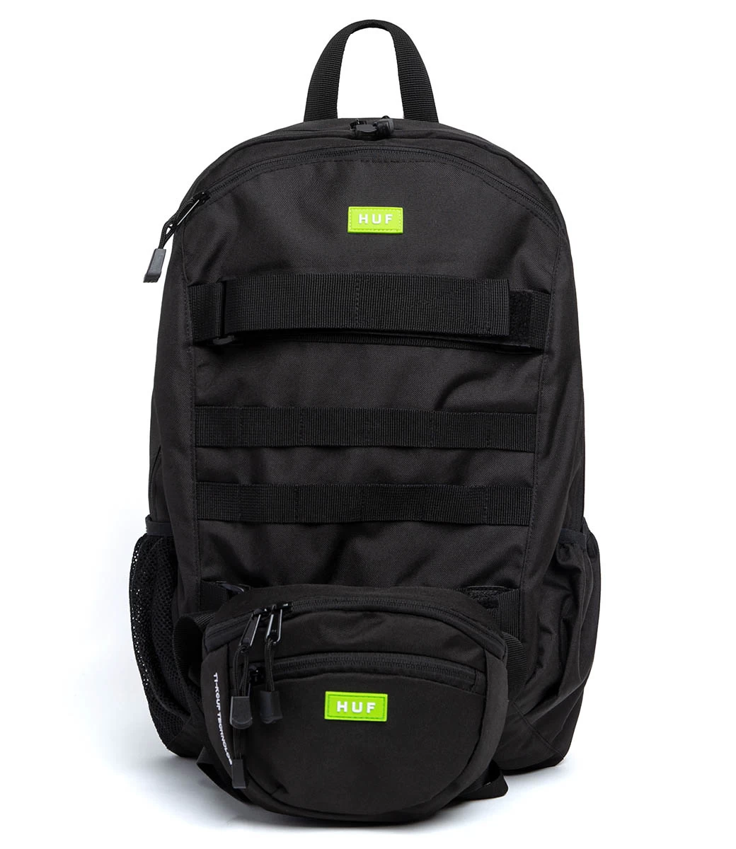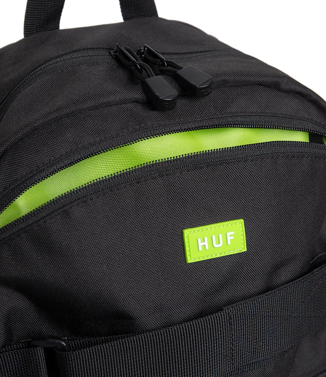 De Mission rugzak is de perfecte rugzak voor hedendaagse skateboarders en avonturiers. De tas is gemaakt van zwaar poly met een weerbestendige coating en heeft stevige skateboardriemen aan de voorkant, terwijl het ruime hoofdvak een gevoerde laptophoes bevat. Perfect voor op reis, de rugzak is compleet met zijvakken voor flessen, zonnebril & sleutelhouder riemen, en duurzame ripstop voering in handtekening HUF-groen.
