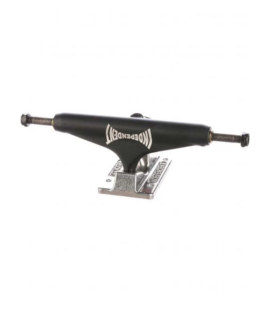 Independent Trucks Mason Silva pro trucks zijn voorzien van platte zwarte hanger met Indy Span & Mason Silva laser geëtste logo’s, gepolijste zilveren baseplate, met oranje kussens en zwarte hardware.