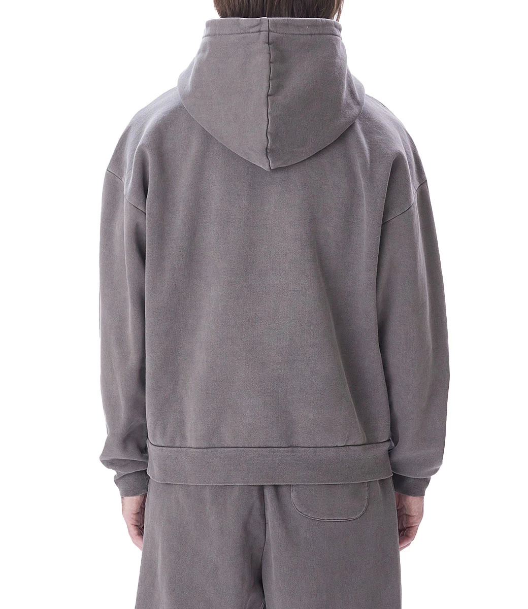 - Met pigment geverfd extra zwaar fleece met capuchon en borduursel.