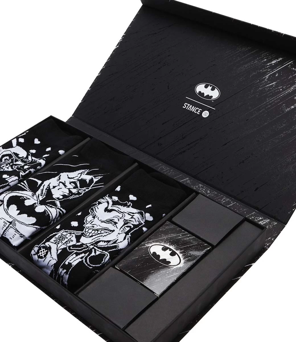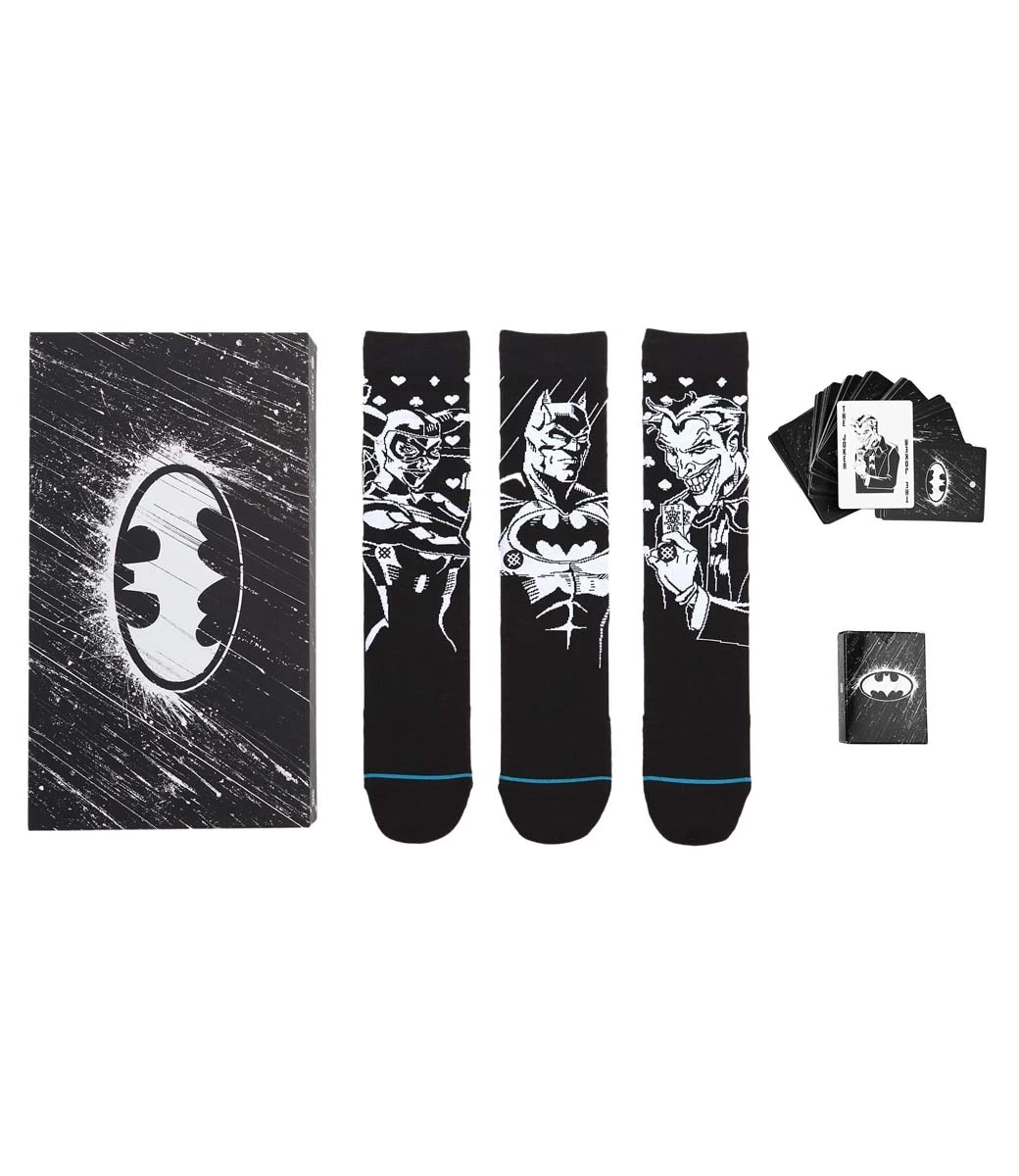 Stance’s samenwerking met DC Comics brengt je een box set van Stance’s katoenen crews met old-school graphics van Batman, The Joker, en Miss Harley Quinn – want een kant kiezen is nooit onze stijl geweest. We hebben een spel Batman speelkaarten exclusief bij de box set gedaan om je misdaadbestrijdings arsenaal compleet te maken. Deze sokken zijn het bewijs dat je geen superkrachten nodig hebt om een superheld te zijn.