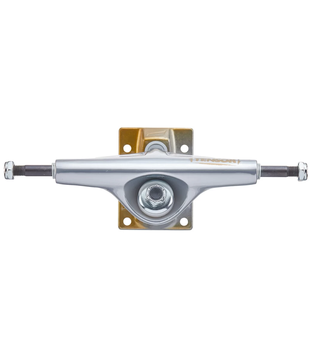 Begin met het opladen door die grinds met de Tensor Aluminium Truck Stencil Mirror Raw/Gold. Gegarandeerd voor het leven, Tensor staat achter hun product om de beste kwaliteit truck op de markt te produceren. Een nieuw ontworpen truck gemaakt voor uw wens. Vervaardigd met een lagere kingpin om meer ruimte door die slijpen en roll-ins toe te staan. Ontworpen met een interlocking bushing techniek om gelijkmatig de reactietijd te verdelen door de bushing met versterkt staal in de belangrijkste gebieden wat resulteert in een algehele sterkere truck met 30% minder gewicht in vergelijking met alle andere truck bedrijven het creëren van de lichtste en sterkste truck op de markt.
